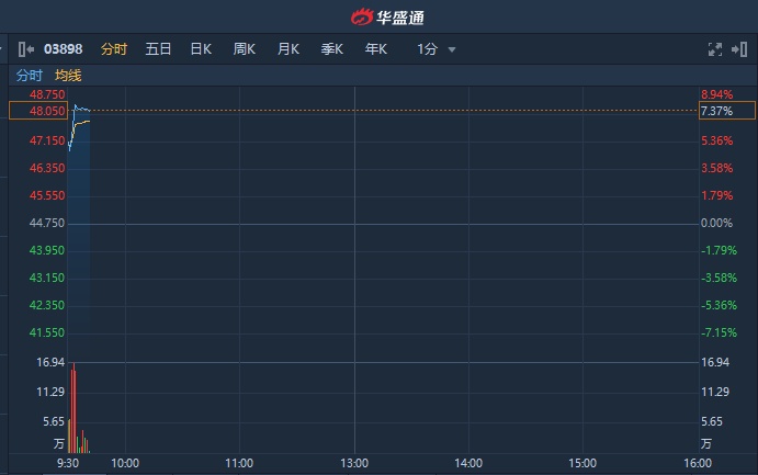 智通财经APP获悉,回调多日的中车时代电气(03898)今日放量突破,跳空高开高走,截至9时40分,涨7.37%,报48.05港元,成交额达716万港元。