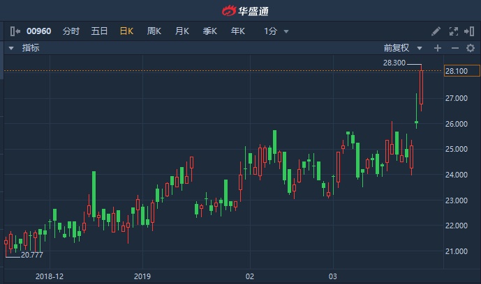 智通财经APP获悉,龙湖集团(00960)绩后延续上涨势头,今日高开高走,盘中再创上市新高28.3港元,截至14时9分,涨7.68%,报28.05港元,成交额达2.652亿港元。