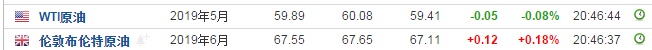 油价方面,WTI原油跌0.08%,报59.89美元/桶。布伦特原油涨0.18%,报67.55美元/桶。