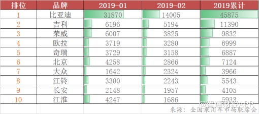 而这种逆势增长的积极趋势态势仍在持续。根据公告披露,2019年1-2月,比亚迪新能源汽车销量达43097辆,同比增长174.73%,市占率进一步攀升至约30%。