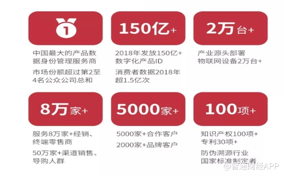 兆信股份的行业第一的龙头地位主要体现在溯源服务上,让生产全程可视化,给产品赋上唯一的身份码,仓储、物流、营销全程跟踪。