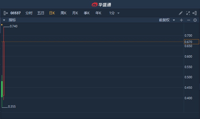 智通财经APP获悉,DOMINATE GP(08537)午后一度扩大至75%,高见0.74港元,较招股价0.3港元升逾1倍,截至15时整,涨65.43%,报0.67港元,成交额达2962万港元。