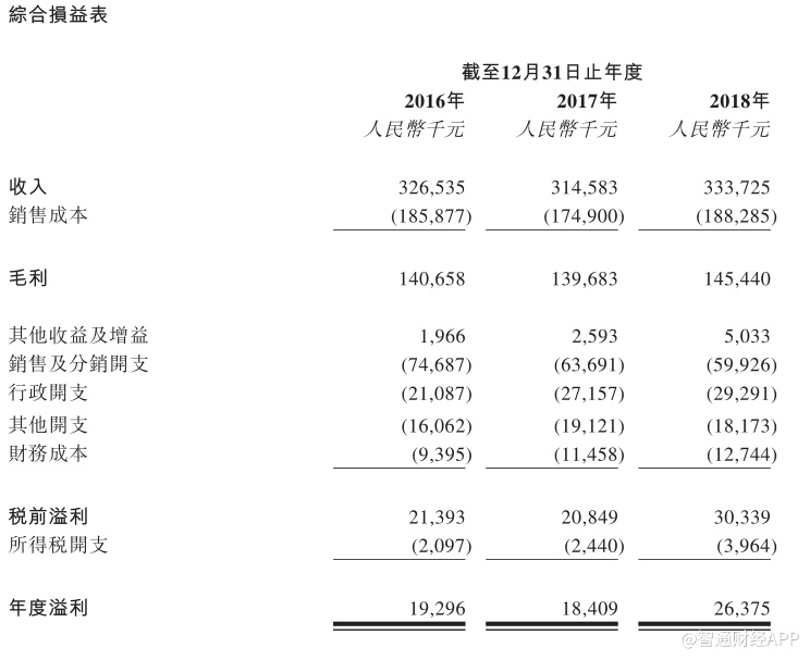 截至2018年12月31日止三个年度,公司分别录得利润约人民币1929万元、人民币1840万元及人民币2637万元。