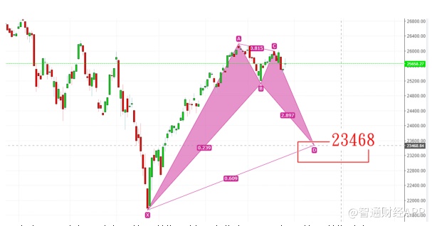 股市方面,读者可以发现美国道指目前双头非常明显,如果美国道指跌穿了24900点水平,可以预期这波反弹结束,目标23468点。