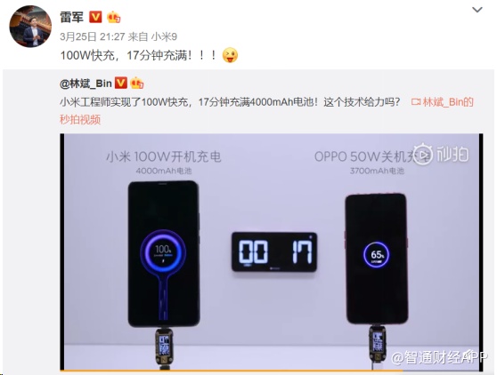 最近,小米总裁林斌在微博上,又曝光了小米全新黑科技:100W快充,利用这一技术,17分钟就可以充满4000mAh电池,小米将其命名为Super Charge Turbo,引起市场广泛关注。米粉们不断追问,哪款手机会配置这样黑科技?只要你敢出,我就敢买!