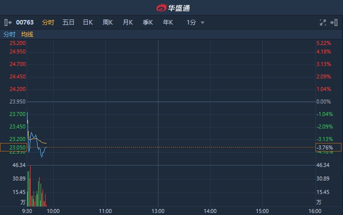 智通财经APP获悉,中兴通讯(00763)早盘逆市走弱,截至9时50分,跌3.76%,报23.05港元,成交额达1.01亿港元。