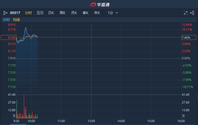 智通财经APP获悉,中船防务(00317)早盘走强,放量显著,截至10时11分,涨7.46%,报8.5港元,成交额达2832万港元。