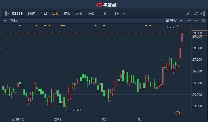 智通财经APP获悉,蒙牛(02319)绩后延续上涨态势,早盘再度高开高走,创去年6月以来新高,截至10时55分,涨5.01%,报29.35港元,成交额达3.367亿港元。