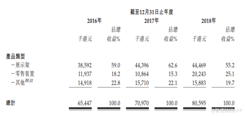 博思集团为销售点产品设计及生产管理服务的香港供应商。其服务包括产品设计、原材料采购、制造商选聘、生产管理、质量控制及物流协调,销售点产品可大致分类为展示架及零售装置。截至2016年、2017年及2018年12月31日止年度,展示架销售分别占该公司收益的59%、62.6%及55.2%。