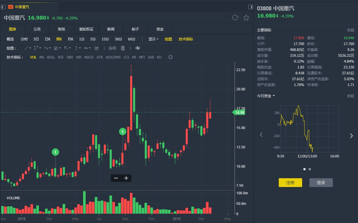 智通财经APP获悉,花旗发表报告称,中国重汽(03808)去年纯利高于该行及市场预测,但收入逊该行预期,由于核心业务(重卡及引擎板块)差于预期,其他分部表现则跑赢。加上成本管控策略见效,该行升重汽2019至2021年各年每股盈测分别5%、9%及9%,以反映毛利率上升,目标价相应自7.5元上调至8元,评级维持“沽售”。