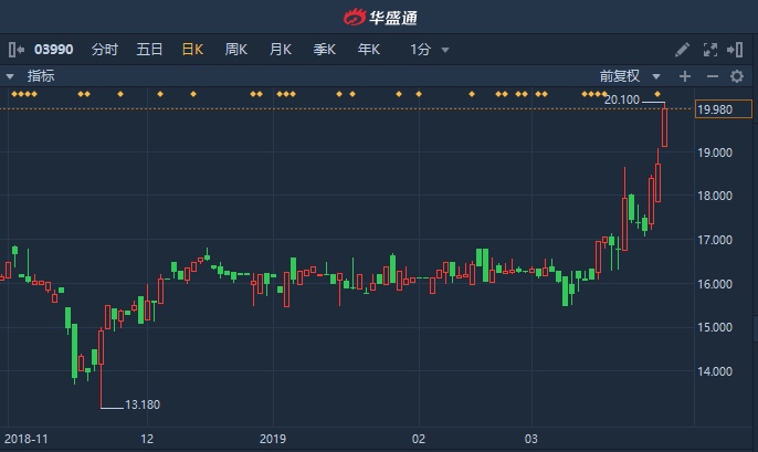 智通财经APP获悉,美的置业(03990)绩后股价持续上扬,今日盘中再创上市新高20.1港元,截至14时16分,涨6.73%,报19.98港元,成交额达4359万港元。