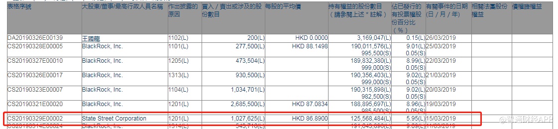 智通财经APP获悉,根据联交所资料显示,State Street Corporation于3月15日减持领展房产基金(00823)102万股,每股作价86.89港元,总值8862.78万港元,最新持股数目1.25亿股,最新持股比例减至5.95%。