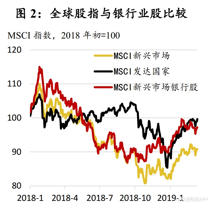 今年以来,MSCI发达国家和新兴经济体银行股指明显抬升,反映出市场对银行业发展前景整体乐观。