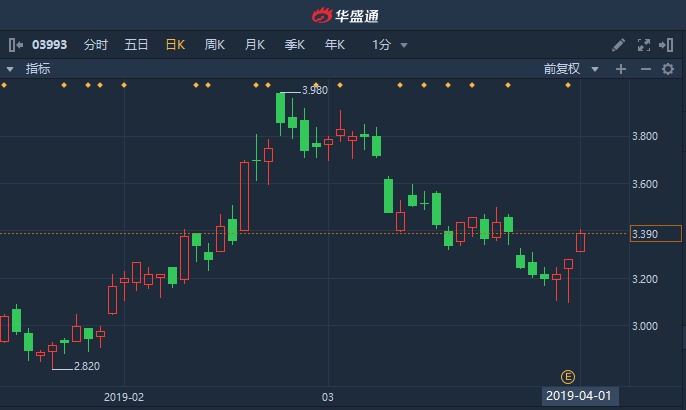 智通财经APP获悉,洛阳钼业(03993)今日股价重回升势,早盘放量上扬,截至10时25分,涨4.27%,报3.42港元,成交额达8768万港元。
