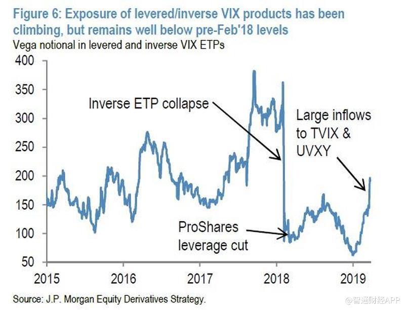 摩根大通指出,这一次与2018年那次不一样,这一次是做多恐慌指数,2月起,一旦VIX指数降到16以下,市场资金就开始涌入多头杠杆的VIX ETP中,正如摩根大通说的,“这是对下一次波动高峰的投机”。