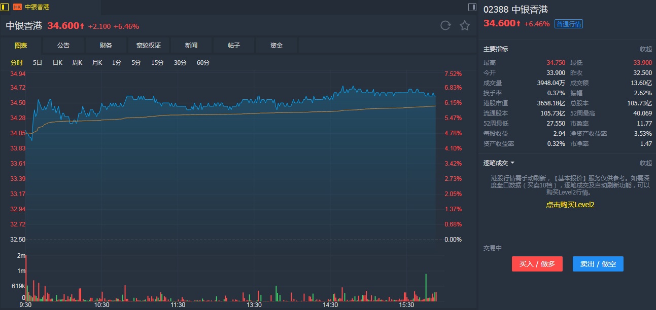 中金表示,中银香港2018年持续经营业务按年升12%至320亿元,全年派息1.468元,派息率为49%。中银香港雄厚的资本亦有助推动赚息资产增长,大湾区发展或带来新机遇。该行在科技上的投资、新设的虚拟银行和东盟地区业务整固将加快其业务发展和资产增长。