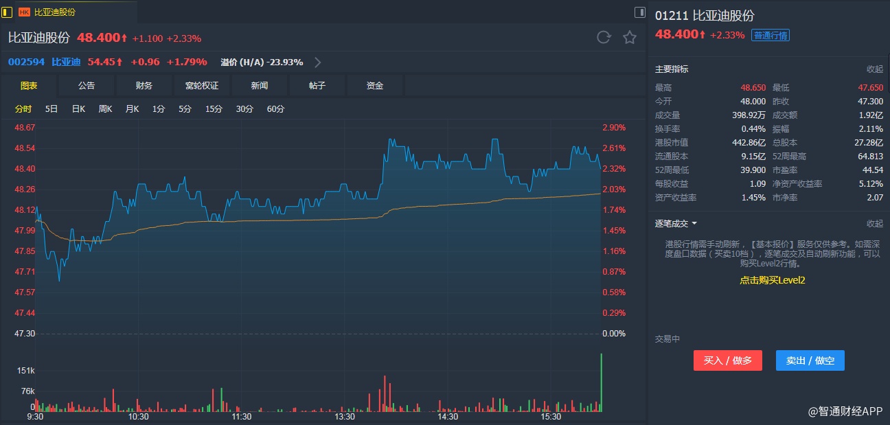 该行预期,因有政府资助,比亚迪今年下半年将交付3500架重型自卸卡车,毛利率为47.4%,预测将令公司2019年税前溢利增加17.6亿元人民币。