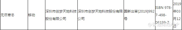 创梦天地(01119)的《绝地战机》《龙图霸业》《无尽寒冬》、中青宝的《桌球风云》、星辉天拓的《盛唐幻夜》等游戏拿到版号。