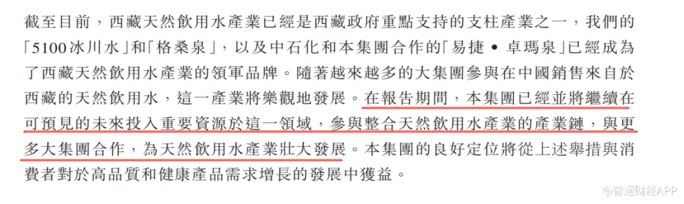此外,西藏水资源在财报未来展望中指出,在报告期间,集团已经并将继续在可预见的未来投入重要资源,参与整合天然饮用水产业的产业链,与更多大集团合作,为天然饮用水产业壮大发展。