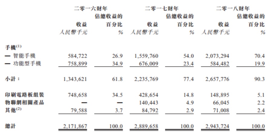 Sprocomm的收益呈增长趋势,由2016财年的人民币2171.9百万元增至2018财年的2943.7百万元,于整个往绩记录期间的复合年增长率为16.4%。