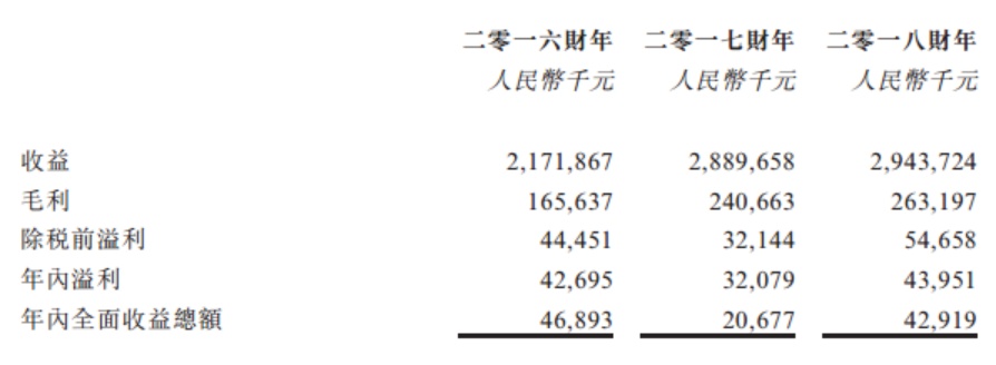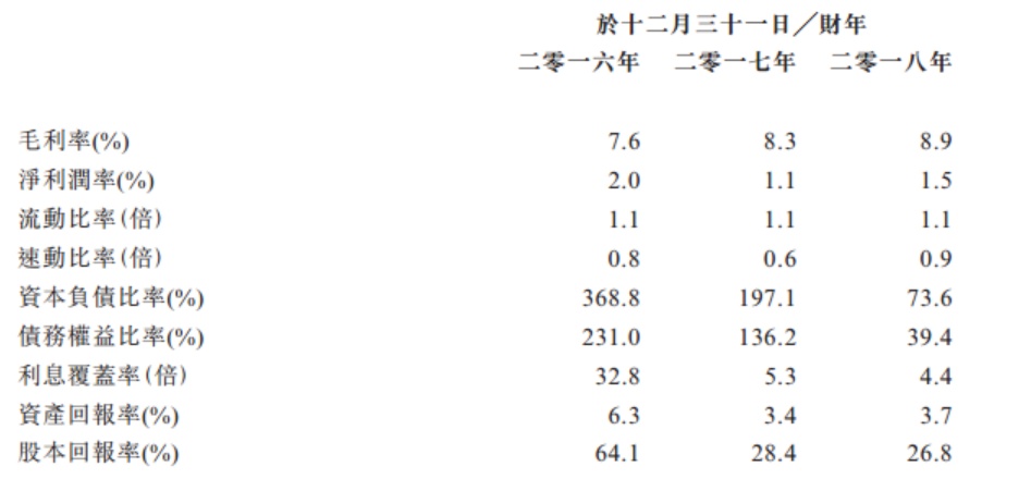 该公司的毛利率于2016、2017及2018财年分别为7.6%、8.3%及8.9%;净利润率则分别为2%、1.1%及1.5%。