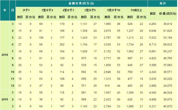 智通财经APP获悉,4月2日,香港特区政府土地注册处数据显示,香港3月住宅销售额459亿港元,上年同期388亿港元,同比增长18.3%;2月住宅销售额361亿港元,环比增长27.1%。香港3月住宅销售5231单位,上年同期4263单位,同比增长22.7%;2月住宅销售4089单位,环比增长27.9%。