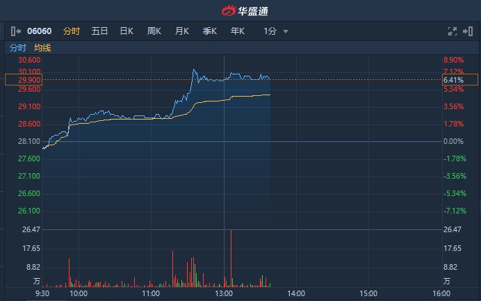 智通财经APP获悉,横盘整固后众安在线(06060)今日重回升势,放量大涨,截至13时37分,涨6.41%,报29.9港元,成交额达8667万港元。