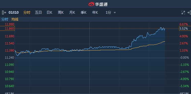 智通财经APP获悉,小米集团(01810)午后股价快速拉升,截至15时31分,涨5.34%,报价11.84港元,成交额10.37亿。