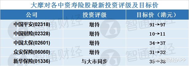 该行的内险股首选为中国平安 、中国太保、中国财险及众安保险,均予“增持”评级。予新华保险(01336)“大市同步”评级。