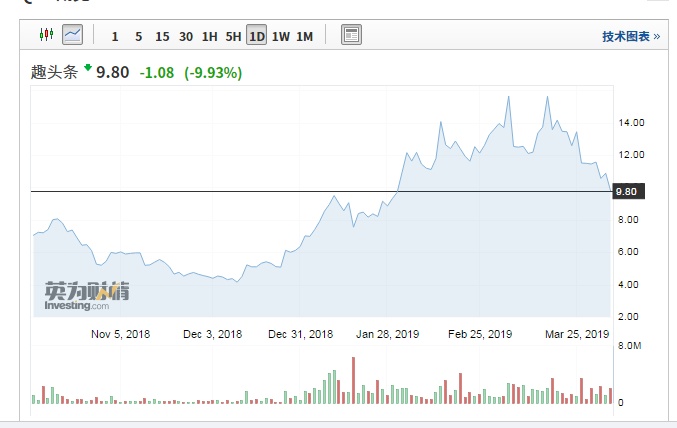 智通财经APP获悉,周三美股开盘,趣头条(QTT.US)股价向下,截至发稿跌9.93%,报价9.80美元。