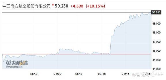 美股异动 | 东方航空(CEA.US)与南方航空(ZNH.US)皆大涨近10%