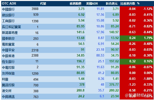 智通ADR统计 | 4月4日