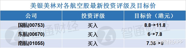下表为该行对航空股最新投资评级及目标价: