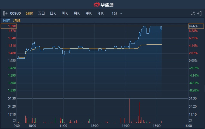 智通财经APP获悉,联华超市(00980)尾盘快速拉升,截至15时8分,涨9.66%,报1.59港元,成交额达544.7万港元。