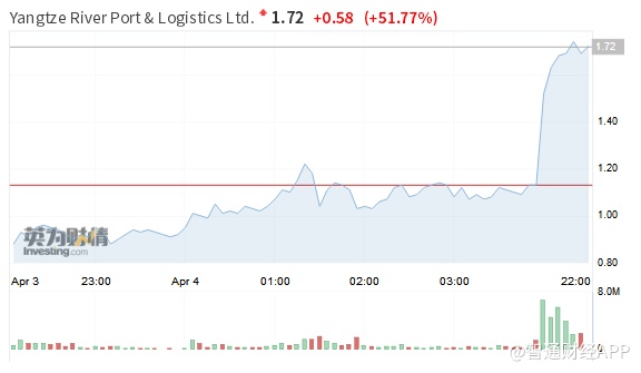 智通财经APP获悉,今日A股交运板块爆发,截止至发稿,在美上市的长江新港物流(YRIV.US)涨幅扩大至56%,近4个交易日大涨逾200%。