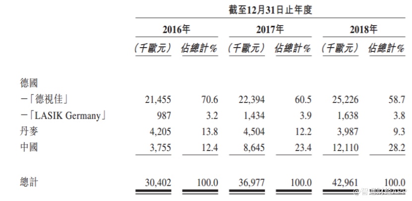 招股书显示,德视佳是一家成立于1993年的德国视力矫正服务公司,公司主要业务是为中高收入目标客户提供优质眼部激光手术,以改善视力。该公司还是为数不多的具有广泛地理覆盖范围的眼科诊所公司之一。据悉,公司同时在德国、丹麦及中国开展视力矫正服务业务。
