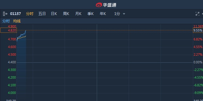 智通财经APP获悉,中联重科(01157)首季归母净利预增1.25倍至1.79倍至8.5亿人民币至10.5亿元人民币,造好股价。截至9时46分,涨9.55%,报价4.82港元,成交额5549万。