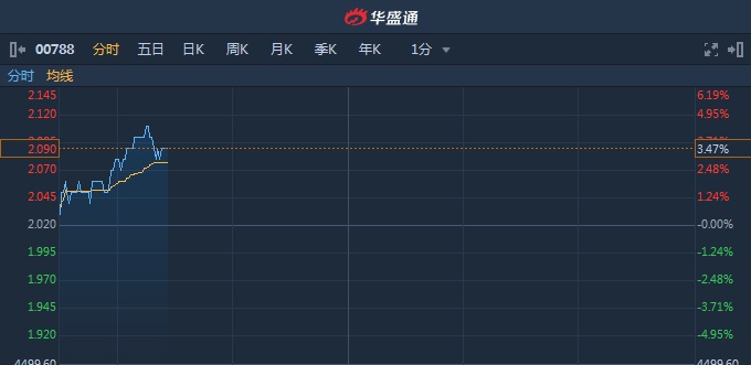 智通财经APP获悉,今日5G概念板块表现活跃,中国铁塔(00788)盘中高见2.12港元,续创新高,截至10时25分,涨3.47%,报价2.09港元,成交额9.649亿。