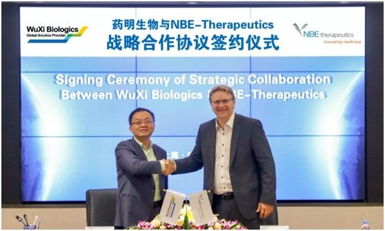 药明生物首席执行官陈智胜博士(左)和NBE-Therapeutics首席执行官Ulf Grawunder博士(右)