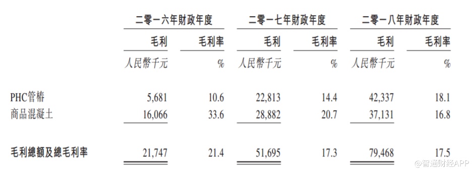 该集团的整体毛利率由2016财年约21.4%减少至2017财年约17.3%,主要由于销售成本整体上涨,特别是砂及砂砾的成本增加已部分抵消PHC管樁及商品混凝土售价提高的影响。其随后于2018财年维持相对稳定于约17.5%。