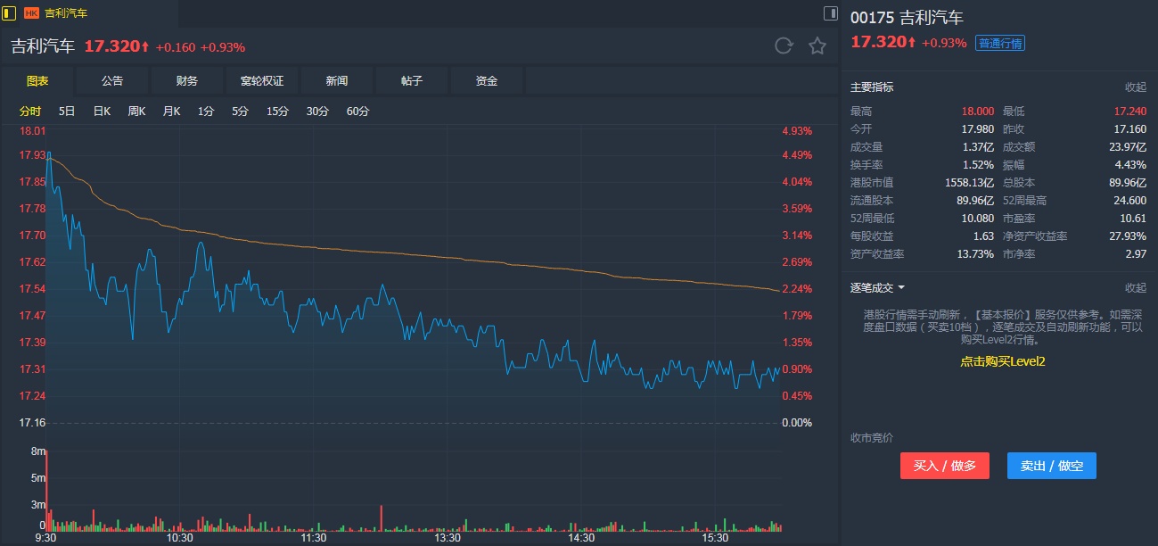 智通财经APP获悉,摩根士丹利发表技术意见报告表示,吉利汽车(00175)未来15天股价将下跌,发生概率为70%-80%,予其“减持”评级,按现金流折现率作估值,目标价8港元。