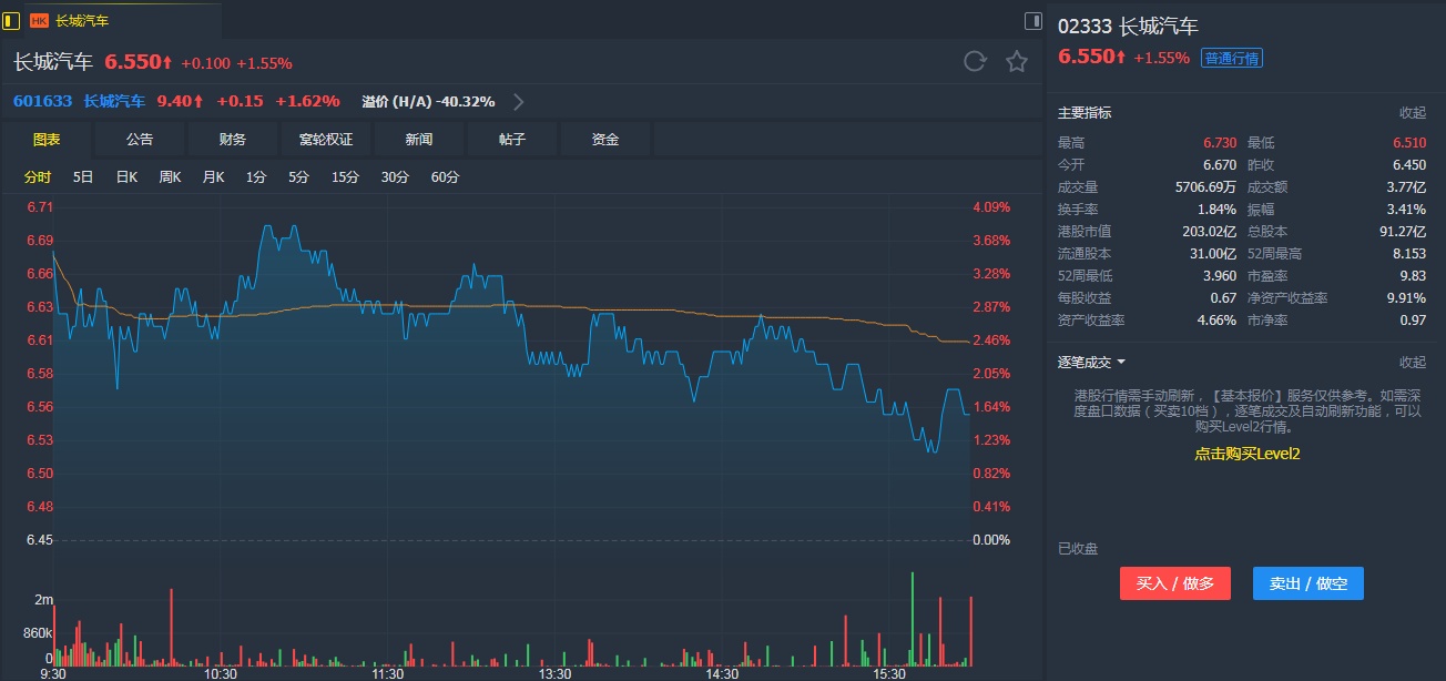 智通财经APP获悉,大摩发表研究报告指,长汽(02333)3月份销量强劲,按年增长16.8%,主要来源于哈弗品牌的销售理想,维持对其“与大市同步”评级,目标价6港元。