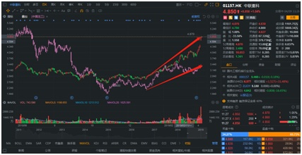 自2019年1月4日的底点算起,截止4月9日,恒指上涨了20.18%,港股工程机械两家代表企业中国龙工(03339)自年初底部已有47.59%的涨幅,中联重科(01157)涨幅更是达到了77.29%,重卡双龙头中的潍柴动力(02338)上涨72.54%,中国重汽(03808)则是79.66%。