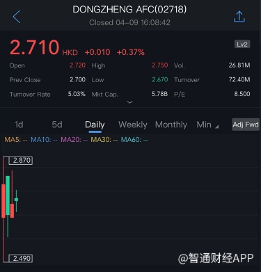 截至今日收盘,东正金融(02718)涨0.37%,报2.71港元。