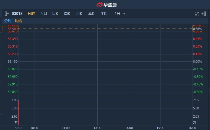 智通财经APP获悉,瑞声科技(02018)盘前有3宗大手成交,每股作价介乎52.986元至53.144元,共涉及396.17万股,共涉资2.1亿元,股价高开0.66%,报53.5港元,成交额达2.535亿港元。