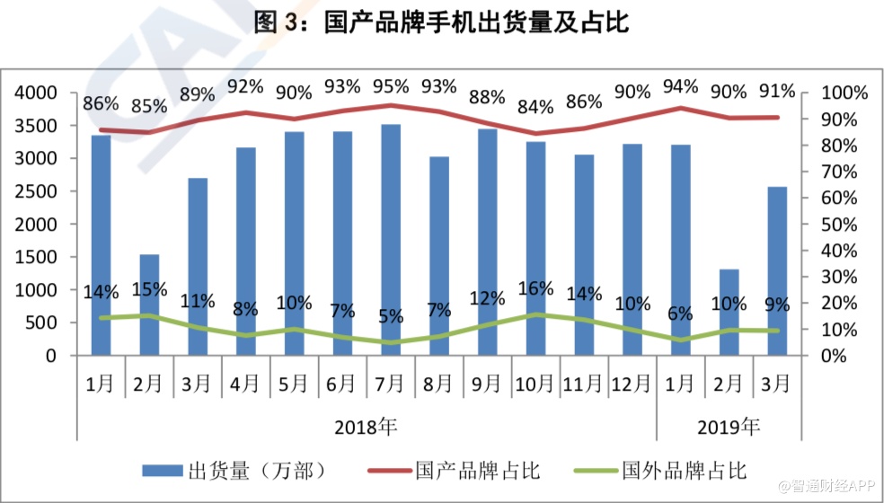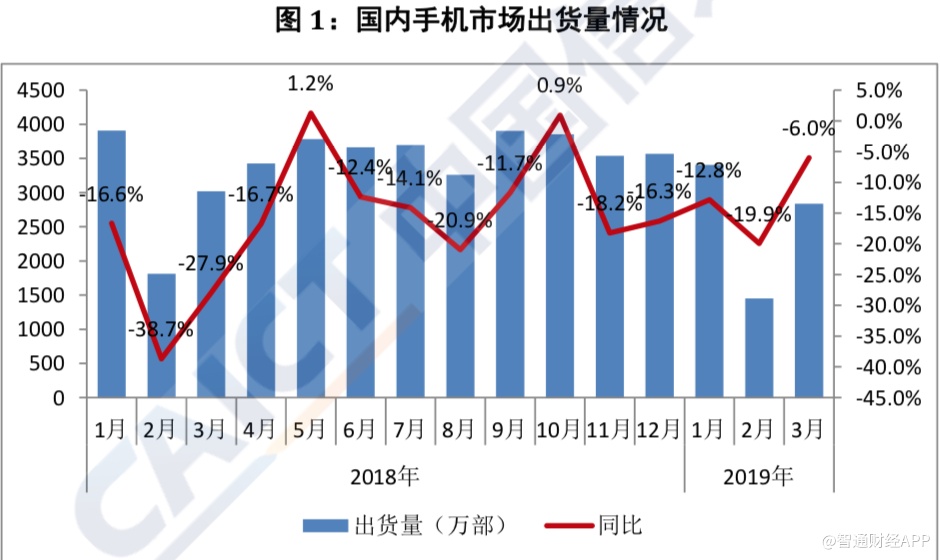 智通财经APP获悉,今日上午,中国信通院公布2019年3月国内手机市场运行分析报告。