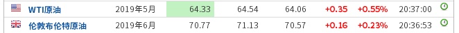 WTI原油涨0.55%,报64.33美元/桶。布伦特原油涨0.23%,报70.77美元/桶。