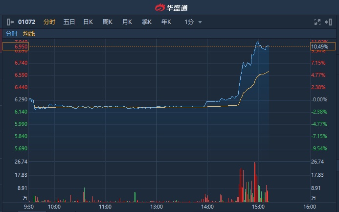 智通财经APP获悉,东方电气(01072)临近尾盘直线拉升,截至15时11分,涨10.65%,报6.96港元,成交额达3621万港元。