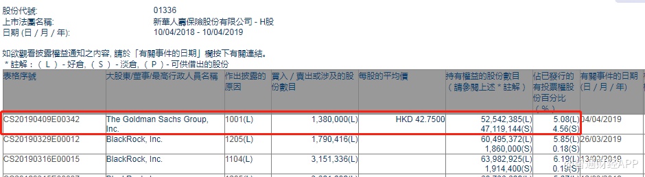 智通财经APP获悉,新华保险(01336)于4月4日获高盛增持138万股,每股作价42.75港元,总值约5899万港元,最新持股数目5254万股,最新持股比例增至5.08%。
