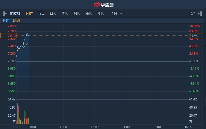 智通财经APP获悉,东方电气(01072)A股早盘再度封板,H股亦跟随大涨,截至9时53分,涨7.18%,报7.61港元,成交额达4301万港元。